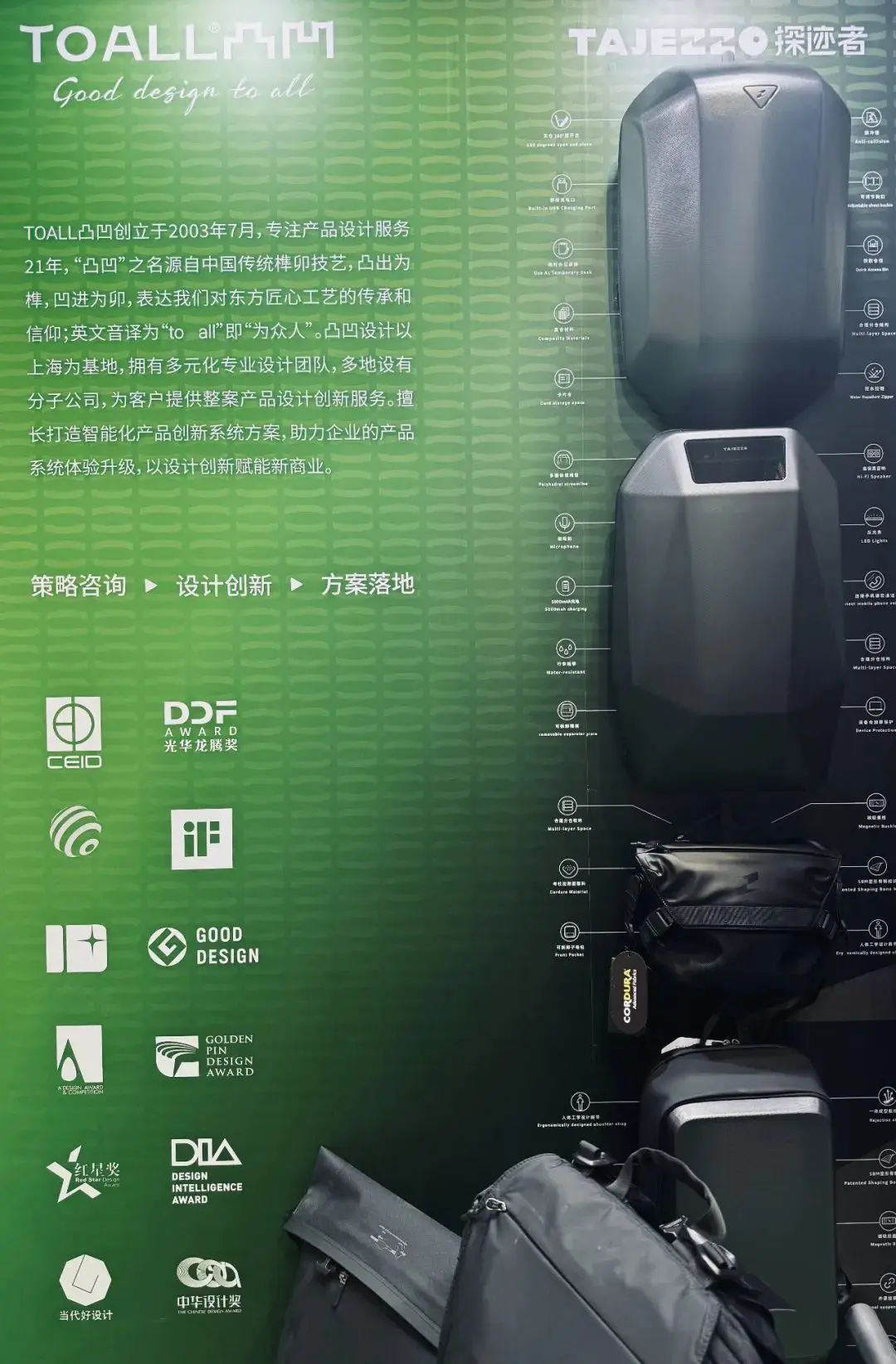在本次大会上,TOALL凸凹设计以其品牌标志性的绿色展位,成为了大会上的一大亮点。凸凹设计以其在智能产品设计领域的杰出表现,展出了多款荣获国内国际设计大奖的产品,包括日本G-mark奖、德国红点奖和iF奖的智能产品设计 。这些产品设不仅展现了凸凹设计对创新和美学的不懈追求,也彰显了中国设计力量在全球设计界的影响力。