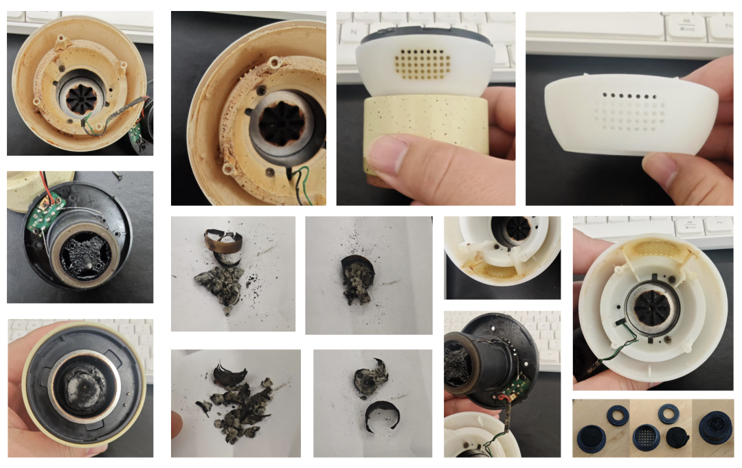 滤芯材质选择会影响滤烟效果和艾柱是否可以燃尽,同时烟雾产生的烟油会污染内部电路,研发团队决定,同时改变滤芯材质和改变风道来测试效果,以达到艾灸过程中效果的保留和舒适的体验,还能同时减少滤芯的更换次数。